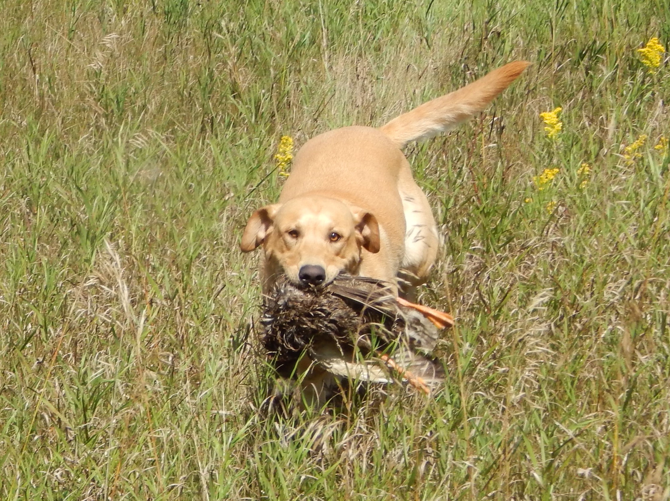 Hunter is a big, handsome 78 pound yellow male. He is out of our 2014 litter between FC Crow Rivers Lucky to the Max and Birddog’s Amazing Grace.