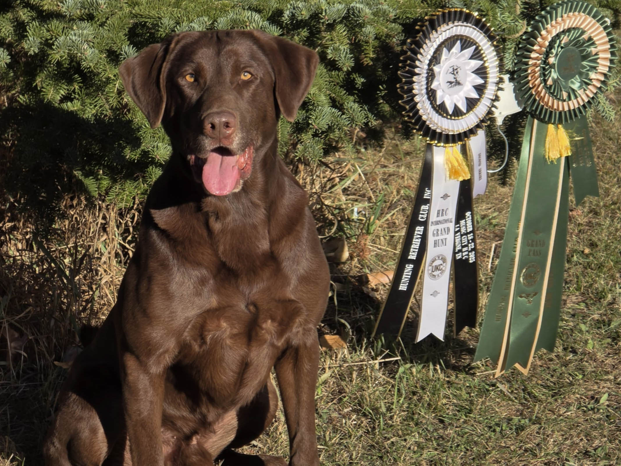 Houdini is a very handsome, dark chocolate male out of our 4th and final litter between FC GRHRCH UH Maestro MH and Maggie MH25!