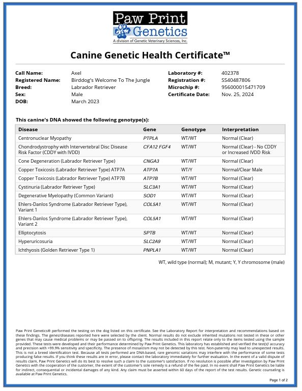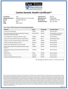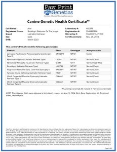 OFA Health Clearances from OFA website & Genetic Clearances from Paw Print Genetics