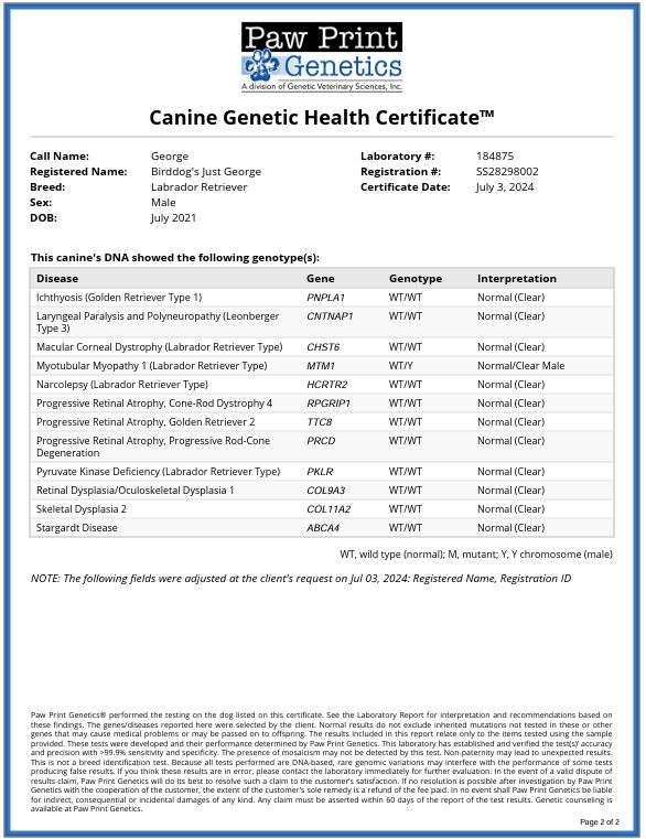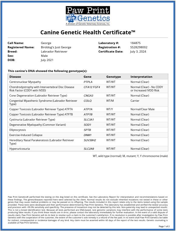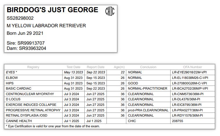 George’s pedigree page: Labrador retriever Pedigree of Birddog’s Just George (huntinglabpedigree.com)